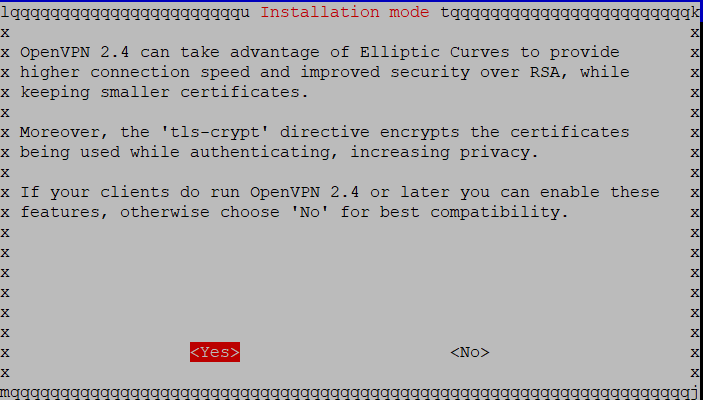 chiede poi se vogliamo immettere dei DNS personali ed ho risposto NO, poi chiede se utilizzare per il collegamento un IP Pubblico (che non ho) oppure usare un servizio DNS che converte un ip dinamico in un name server come No-Ip che ho selezionato proseguendo con l’installazione. Mi ha chiesto se volevo aggiornare gli script e quale crittografia adottare: